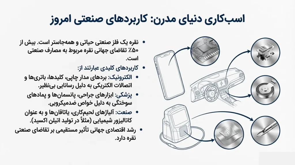نقره یک فلز گرانبها با رسانایی بالا و خواص ضدباکتری است که در صنایع الکترونیک، پزشکی، انرژی و جواهرسازی کاربرد دارد.