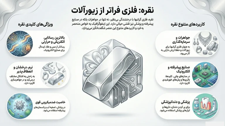 نقره یکی از ارزشمندترین و پرکاربردترین فلزات در جهان است که نقش حیاتی در زندگی روزمره ما، از زیورآلات تا فناوریهای نوین دارد. شناخت عمیقتر این فلز، به ما کمک میکند تا از آن هوشمندانهتر استفاده کنیم و فرصتهای سرمایهگذاری بهتری بیابیم.