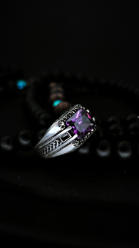 انگشتر نقره مردانه طرح آمیتیست |5.69گرم|